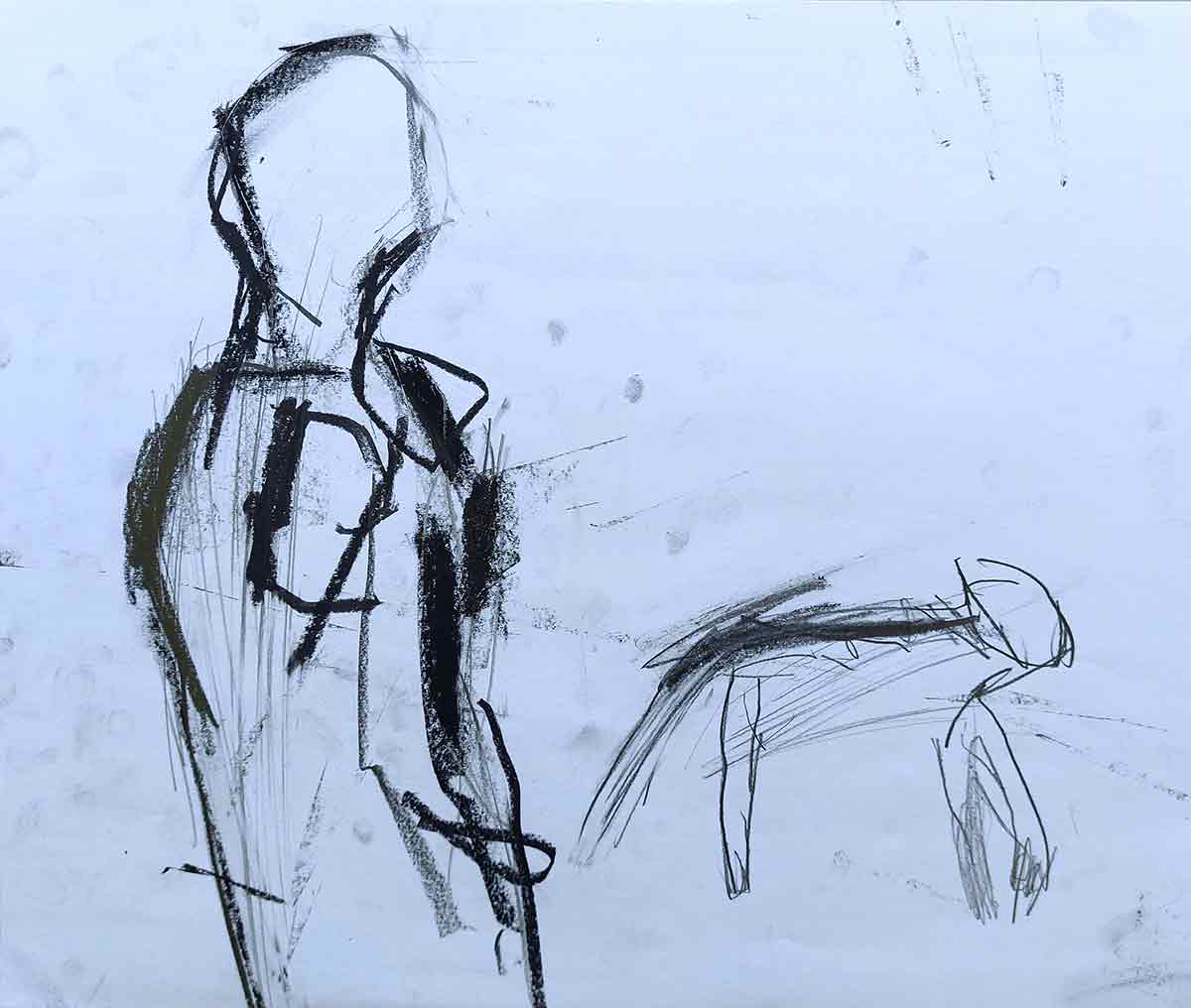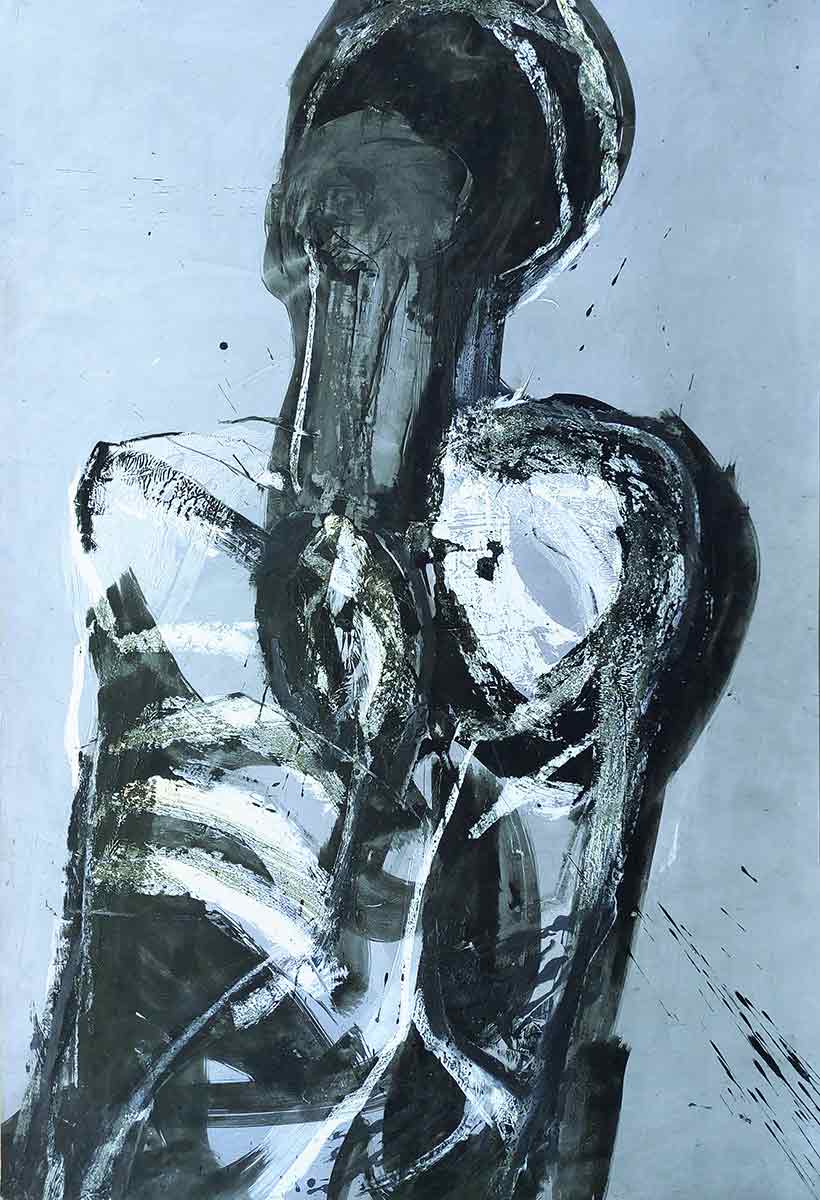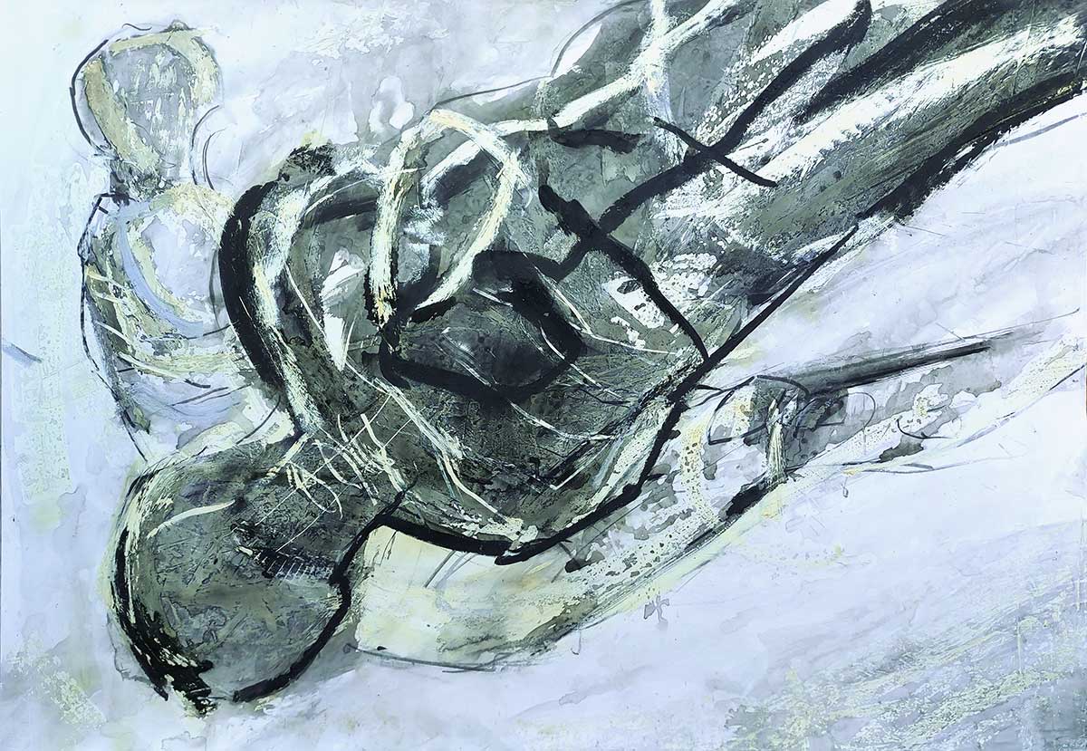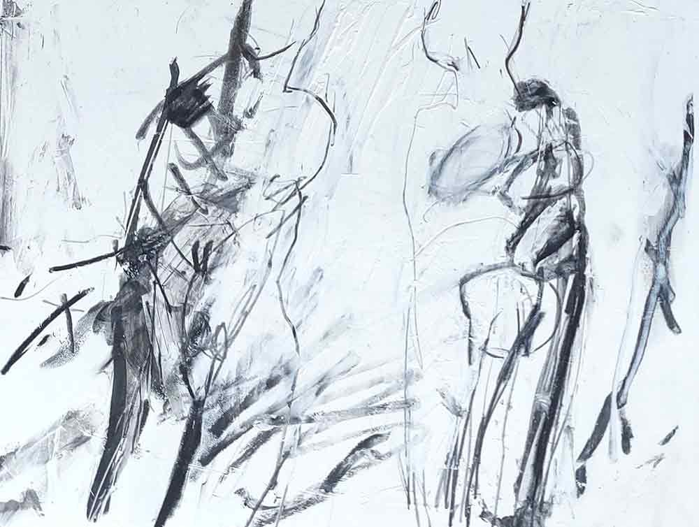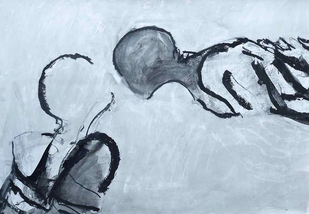 Diese expressiven Figurenbilder begleiten mich schon lange. Sie drücken Gefühle und Beziehungen aus, die durchscheinenden Knochen und Organe bilden innere Zustände stellvertretend mit ab.