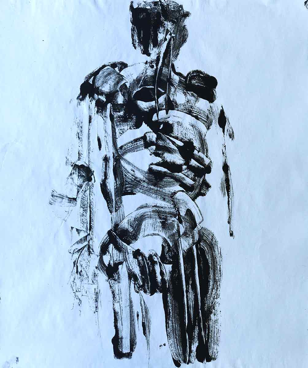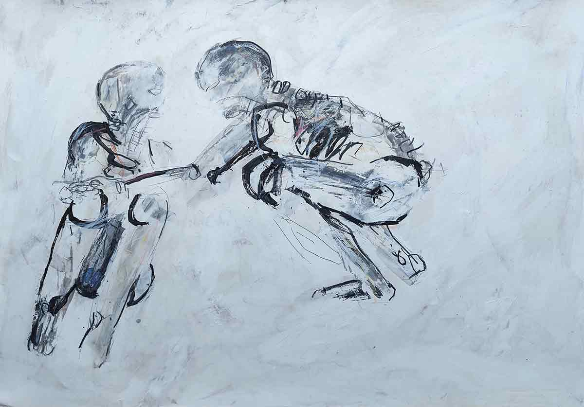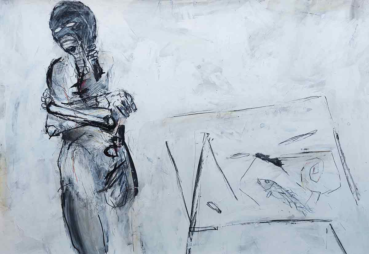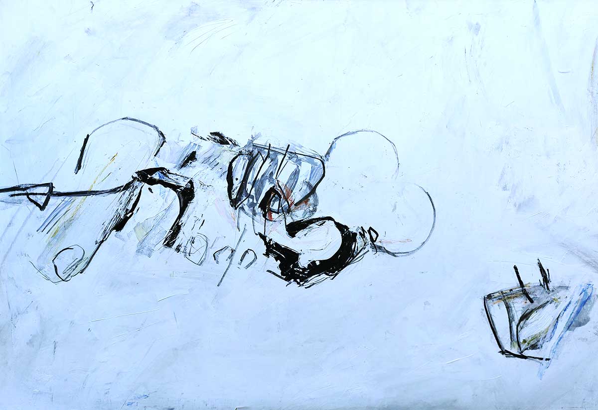 Diese expressiven Figurenbilder begleiten mich schon lange. Sie drücken Gefühle und Beziehungen aus, die durchscheinenden Knochen und Organe bilden innere Zustände stellvertretend mit ab.